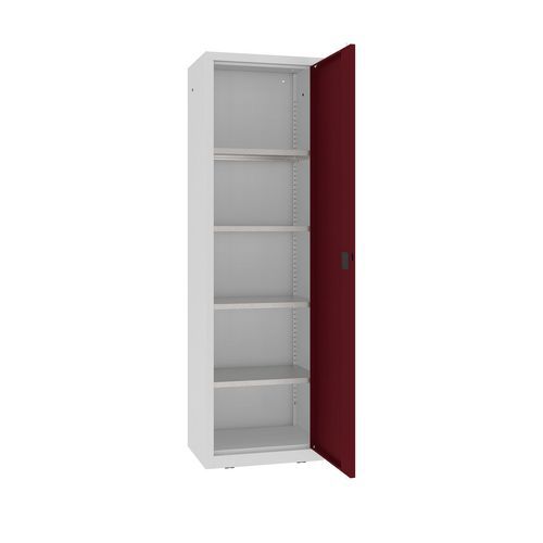 Fém műhelyszekrény, 199 x 60 x 43,5 cm, 4 polcos, szürke/sötét. piros Fém műhelyszekrény, 199 x 60 x 43,5 cm, 4 polcos, szürke/sötét. piros