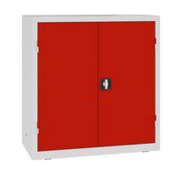 Fém műhelyszekrény dobozokkal, 104 x 100 x 50 cm, szürke/piros
