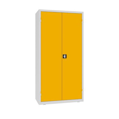 Fém műhelyszekrény perforált panellel, 199 x 100 x 50 cm, 2 fiókos, szürke/sárga Fém műhelyszekrény perforált panellel, 199 x 100 x 50 cm, 2 fiókos, szürke/sárga