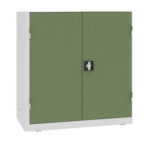 Műhelyszekrények műhelyfelszerelések és anyagok tárolására alkalmas rekesszel. Monolit hegesztett acél szerkezet. 1 mm nagy szilárdságot biztosít. Professzionális használatra alkalmas beltéri száraz és szellőző helyiségekben. 10 fiókkal és 2 horganyzott polccal, melyek 25 mm-es lépésekben állíthatók. Lengőajtó RONIS hárompontos zárral (2 kulccsal szállítjuk). Belülről állítható szintező lábak. Csúszkák a szekrény könnyű mozgatásához és a padló védelméhez. A nagy biztonság érdekében a falhoz rögzíthető. Festés előtt a szekrényeket cirkónium réteggel vonják be, amely védi őket a korróziótól és növeli a festék tapadását. A szekrények a PN-EN 13501-1:2019-02 szabvány szerint A2-s1, d0 tűzvédelmi besorolással vannak bevonva. ISO:9001 és ISO:14001 szabványok szerint gyártva.