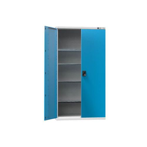 Műhelyszekrények szárnyas ajtókkal, 180°-os nyitási szöggel. Stabil szerkezet acéllemezekből. A szekrény négy polccal van felszerelve, amelyek 25 mm-es lépésekben állíthatók. A perforált panelek a függesztőprogram felakasztására használhatók, illeszthetők a szekrény hátsó vagy oldalfalára vagy az ajtóba. A szekrény teherbírása 600 kg. Három színváltozatban kapható. Ha a szekrény erősen meg van terhelve, a szekrényt a padlóhoz vagy a falhoz kell rögzíteni.