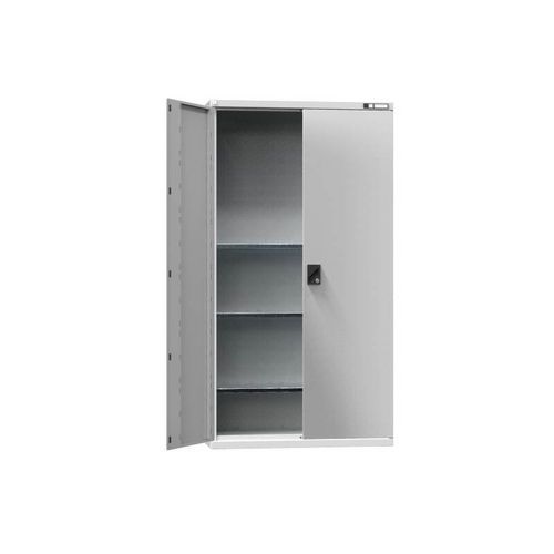 Fém műhelyszekrények nyíló ajtókkal és 180°-os nyitási szöggel. Stabil szerkezet acéllemezekből. Három állítható magasságú polcot tartalmaz 25 mm-es rácsban. A szekrényeket többek között az 54 x 27D méretű akasztóprogram és fiókok használatára tervezték. Az ajtó csendes, kétpontos zárrendszerű zárral zárható. Perforált panelek segítségével akasztható fel a függesztőprogram, a szekrény hátoldalára vagy oldalfalára szerelve. 3 színárnyalatban kapható. A szekrény teherbírása 600 kg.