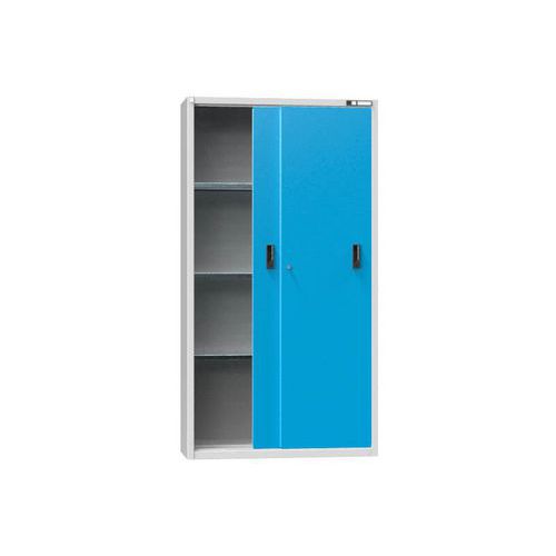 A fém tolóajtós műhelyszekrények különösen olyan helyekre alkalmasak, ahol helyhiány miatt nem lehet csuklós ajtós szekrényeket beépíteni. Az ajtók golyóscsapágyakon csúsznak. A szekrények az eredeti POLAK kivitelű szórószerkezetes zárral zárhatók. A csomagban 3 horganyzott polc található, amelyek 25 mm-es lépésekben állíthatók. Három szín közül választhat. Terhelhetősége 600 kg.