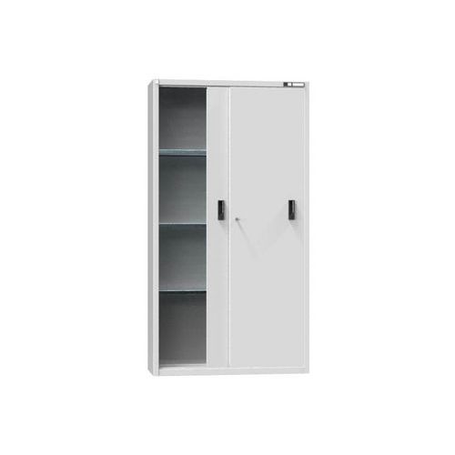 A fém tolóajtós műhelyszekrények különösen olyan helyekre alkalmasak, ahol helyhiány miatt nem lehet csuklós ajtós szekrényeket beépíteni. Az ajtók golyóscsapágyakon csúsznak. A szekrények az eredeti POLAK kivitelű szórószerkezetes zárral zárhatók. A csomagban 3 horganyzott polc található, amelyek 25 mm-es lépésekben állíthatók. Három szín közül választhat. Terhelhetősége 600 kg.