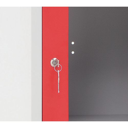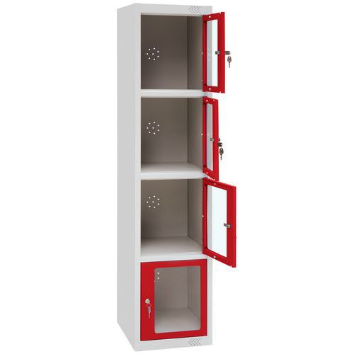 Fém öltözőbútor Manutan Expert Jenny, 4 boxos, átlátszó ajtóval, piros