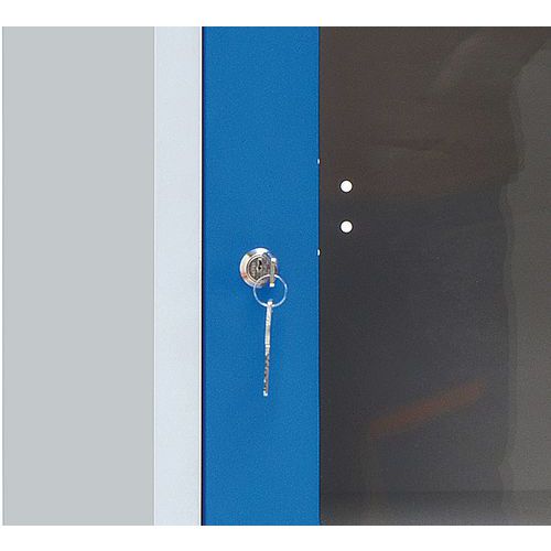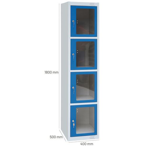 Fém öltözőbútor Manutan Expert Jenny, 4 boxos, átlátszó ajtóval, kék