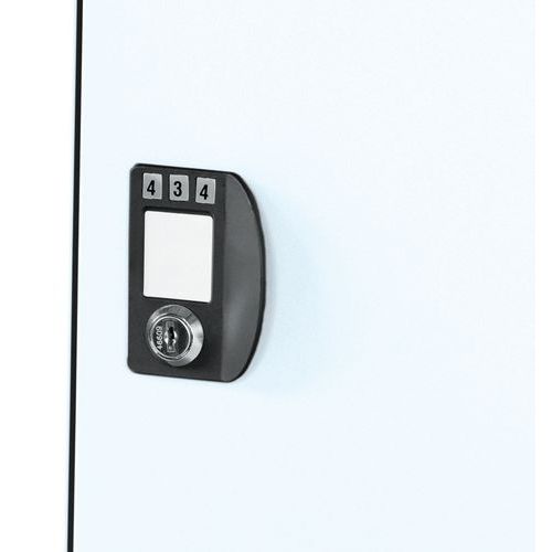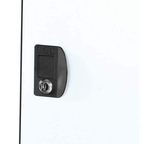 Többcélú öltőzőbútor személyes tárgyak és ruházat tárolására, beltéri használatra. Az egyik rész öt boxból áll, a másik rész két polccal és egy 90 cm hosszú fém rúddal van felszerelve. A boxok szellőzéséről a hátfalon lévő szellőzőnyílások gondoskodnak. A boxok ajtói külső pántokon vannak felakasztva és hengerzárral zárhatók.