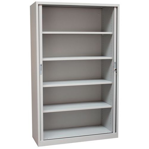 - Négy állítható polccal és oldalra teljesen elhúzható műanyag rolókkal szerelt szekrény. Hengerzárral zárható.