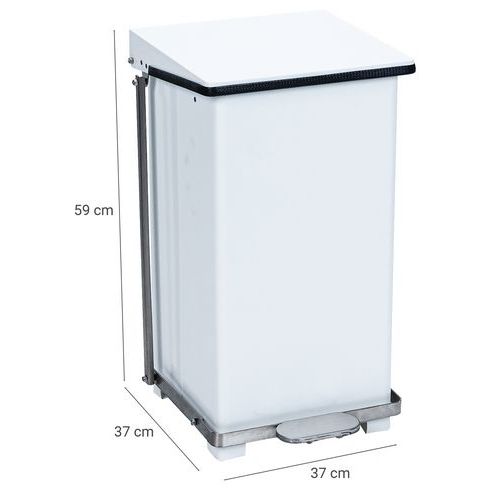 Szemetes lábpedállal a fedél higiénikus felnyitására. A fedél csillapított zárórendszere. Műanyag szemeteszsák rögzítő fül. Beépített lábak a kosár stabilitása érdekében. Tűzálló és időjárásálló.