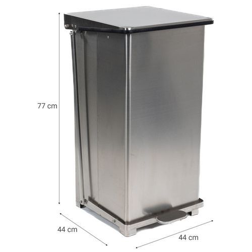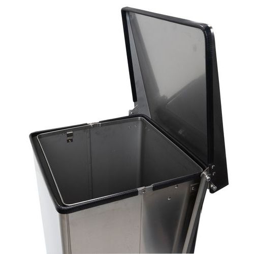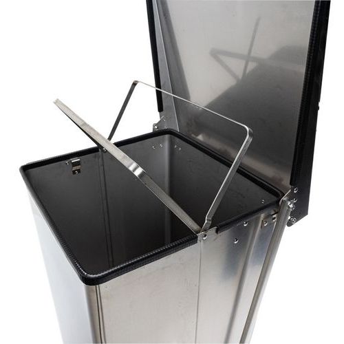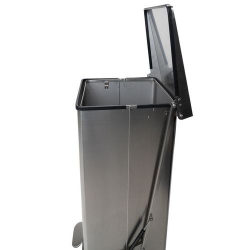 Szemetes lábpedállal a fedél higiénikus felnyitására. A fedél csillapított zárórendszere. Műanyag szemeteszsák rögzítő fül. Beépített lábak a kosár stabilitása érdekében. Tűzálló és időjárásálló.