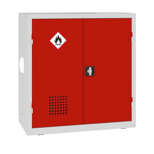Fém vegyszeres szekrény, 104 x 100 x 50 cm, szürke/piros