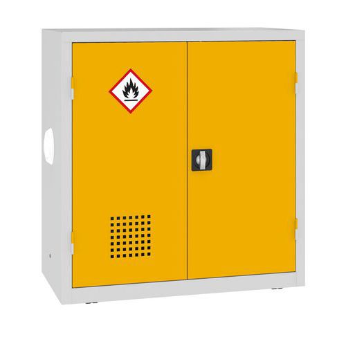 Fém vegyszeres szekrény, 104 x 100 x 50 cm, szürke/sárga