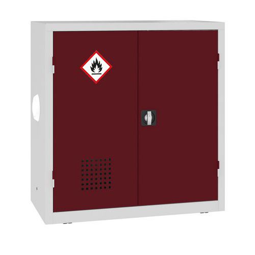Fém vegyszeres szekrény, 104 x 100 x 50 cm, szürke/sötét. piros