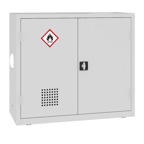 A lengőajtók szellőzőnyílásokkal rendelkeznek a levegő keringtetése érdekében, és GHS-02 címkével vannak ellátva a szabványos vegyi veszélyek azonosításához.