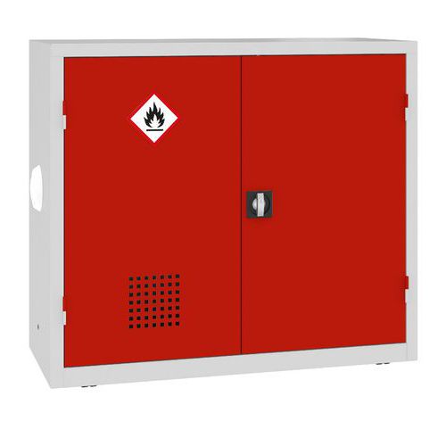 Fém vegyszeres szekrény, 104 x 120 x 50 cm, szürke/piros