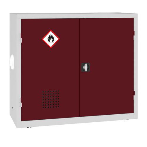 Fém vegyszeres szekrény, 104 x 120 x 50 cm, szürke/sötét. piros