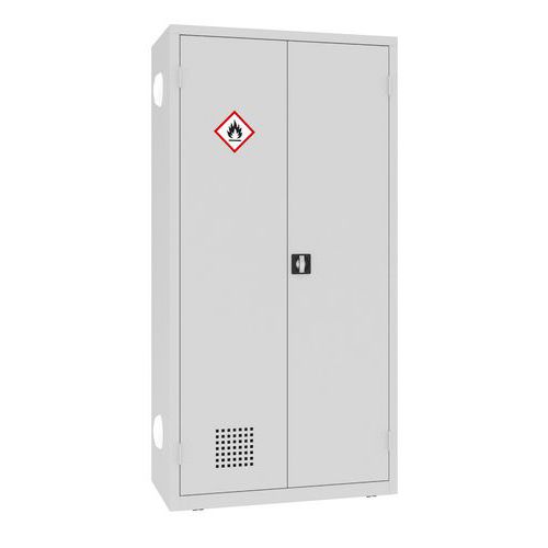 A lengőajtók szellőzőnyílásokkal rendelkeznek a levegő keringtetése érdekében, és GHS-02 címkével vannak ellátva a szabványos vegyi veszélyek azonosításához.