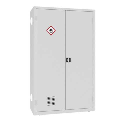 A lengőajtók szellőzőnyílásokkal rendelkeznek a levegő keringtetése érdekében, és GHS-02 címkével vannak ellátva a szabványos vegyi veszélyek azonosításához.