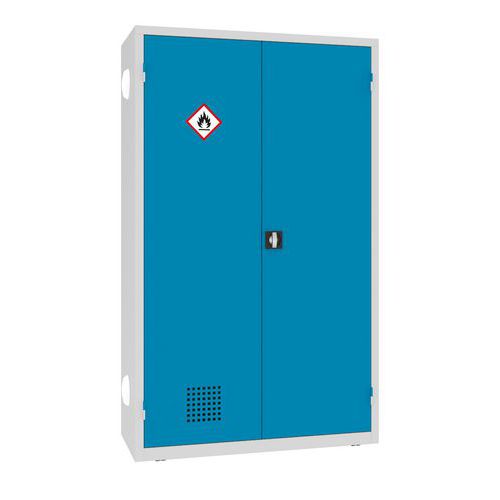 A lengőajtók szellőzőnyílásokkal rendelkeznek a levegő keringtetése érdekében, és GHS-02 címkével vannak ellátva a szabványos vegyi veszélyek azonosításához.