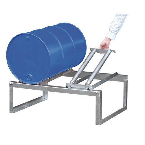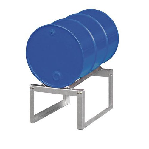 Fémállvány a 220 literes hordók vízszintes tárolására. A lécek vége hajlított a nagy stabilitás érdekében, amikor a felfogó tálcák rácsára helyezik őket. Max. sztatikus terhelés (kg) : 760 kg