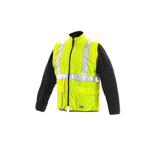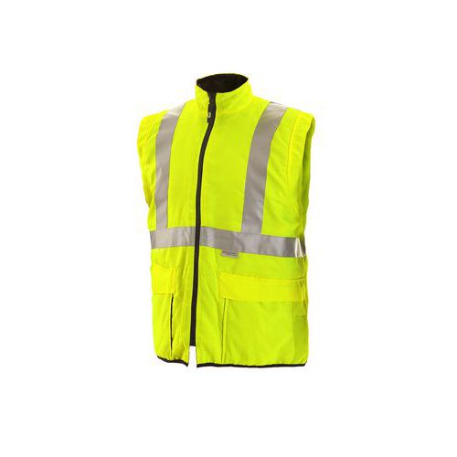 Jó láthatóságra figyelmeztető kabát levehető belső kabáttal, 5 az 1-ben, víz- és szélálló, kapucnis gallérban, 3M fényvisszaverő csíkok, belső mobiltelefon zseb, ragasztott varratok. Méret: S-XXXL Division: Férfi szabványok: EN 471+A1, EN 343+A1 Anyagösszetétel: lélegző 100% poliészter Oxford, bélés 100% poliészter, belső kabát kivehető ujjú, belső anyag: 100% poliészter Oxford100% ujjak poliészter - gyapjú, töltet 100% poliészter Szín: sárga-kék