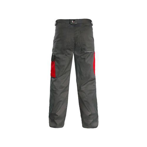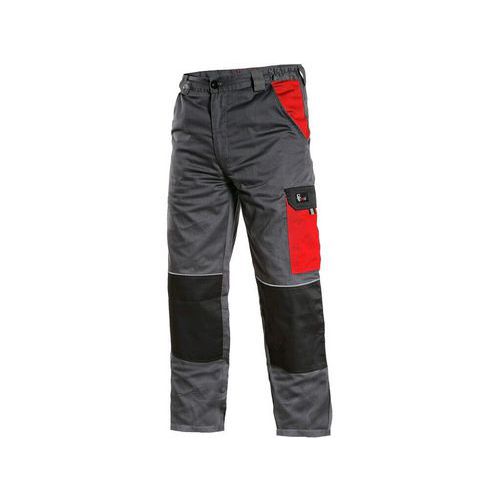Férfi derekú nadrág, elülső zsebek, mérőszalag zseb, oldalzseb füllel, hátsó egy zseb, derék övhurokkal. Méret: 46-64 Szabványok: EN ISO 13688 Öltönykollekció: CXS PHOENIX Anyagösszetétel: 65% poliészter, 35% pamut, 190 gsm Szín: szürkés-piros