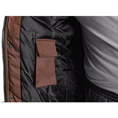 2 az 1-ben szigetelt kabát, levehető kapucni, levehető ujjak, ujjak és alsó széle állítható mandzsettával, ragasztott varratok, belső zseb, fényvisszaverő cső, vízállóság 3000 mm, páraáteresztő képesség 3000 g/m2/24h. Méret: S- XXXXL szezon: Téli osztály: Férfi szabványok: EN ISO 13688:2014, EN14058:2004 Anyagösszetétel: 100% poliészter, bélés 100% poliészter, töltet 100% poliészter Szín: barna-fekete