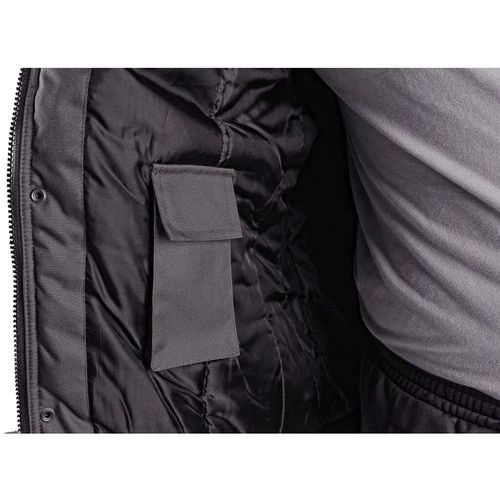 az 1-ben szigetelt kabát, levehető kapucni, levehető ujjak, ujjak és alsó széle állítható mandzsettával, ragasztott varratok, belső zseb, fényvisszaverő cső, vízállóság 3000 mm, páraáteresztő képesség 3000 g/m2/24h. Méret: S- XXXXL szezon: Téli osztály: Férfi szabványok: EN ISO 13688:2014, EN14058:2004 Anyagösszetétel: 100% poliészter, bélés 100% poliészter, töltet 100% poliészter Szín: szürke-fekete