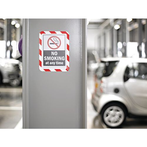 Biztonsági A4 jelzőtáblák különböző színekben a fontos információk kiemeléséhez. A zsebek szélét csíkos biztonsági keret alkotja. Könnyű dokumentumcsere a fentről kinyitható előlapnak köszönhetően. A mágneses hátoldal könnyű szerelést biztosít.