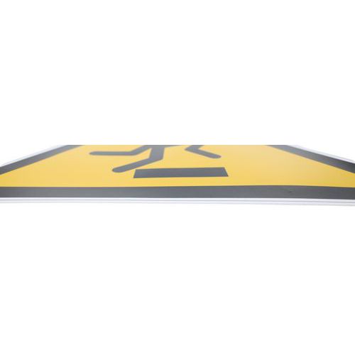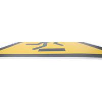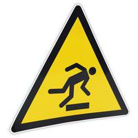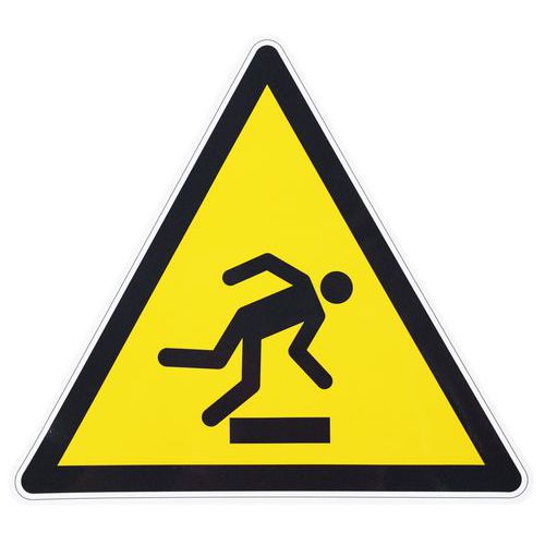 Figyelmeztető táblák, amelyek a megbotlás veszélyére figyelmeztetnek. Bármilyen sima, zsírtalanított és tiszta felülethez való ragaszkodáshoz. A polimer laminálás megvédi a jeleket a fizikai kopástól, és kiszűri az UV-sugarakat.