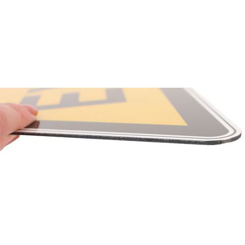 Sárga alumínium veszélyjelző tábla, amely figyelmeztet a veszélyre és éberségre szólít fel. Megfelel a munkahelyi biztonsági és egészségügyi jelzésekre vonatkozó európai szabványoknak. Használat: külső és/vagy belső használatra Tartós és robusztus.