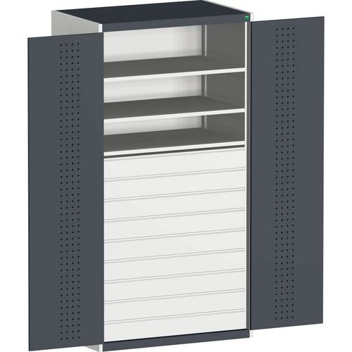 Fiókos műhelyszekrény Bott Cubio 160, 200 x 130 x 65 cm, 3 polc, 9 fiók, szürke-antracit Fiókos műhelyszekrény Bott Cubio 160, 200 x 130 x 65 cm, 3 polc, 9 fiók, szürke-antracit