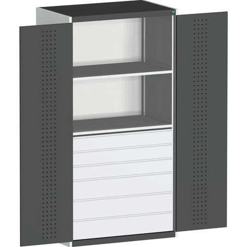 Fiókos műhelyszekrény Bott Cubio 160, 200 x 130 x 65 cm, 2 polc, 6 fiók, szürke-antracit Fiókos műhelyszekrény Bott Cubio 160, 200 x 130 x 65 cm, 2 polc, 6 fiók, szürke-antracit
