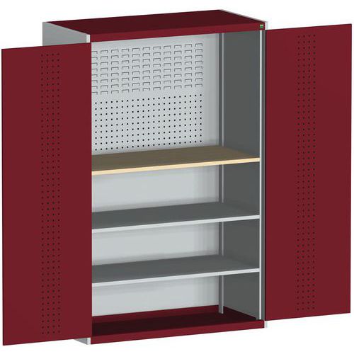 Fiókos műhelyszekrény Bott Cubio, multiplex, 200 x 130 x 65 cm, 2 polccal, szürke-piros