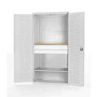 A szekrények hátulja és a Az ajtó belsejében perforált panelek vannak a szerszámok rögzítéséhez. Robusztus hegesztett acélszerkezet, akár 1,5 tonna teherbírással, felületkezelés porral Lakkozott.