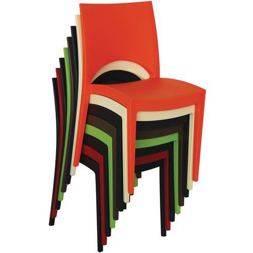 Modern kialakítású szék. Könnyen egymásra rakható és tárolható. Belső és kültéri használatra alkalmas. Maximális terhelés: 100 kg.