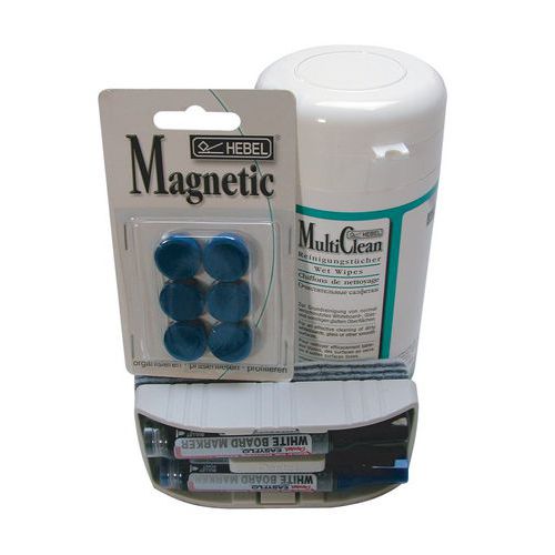 A csomagolás része 100 db nedves törlőkendő, 6 db 20 mm átmérőjű mágnes, 2 törölhető irón és egy törlőszivacs.