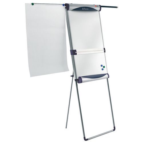 - Mágneses felületű flipchart tábla kihúzható oldalsó karokkal. Folyamatosan állítható akár 180 cm magasságig. A tábla speciális oldalsó kihajtható lécekkel rendelkezik a papír mágnesekkel történő rögzítéséhez. A felső műanyag csappantyú lehetővé teszi az akár 30 papírlap felhelyezését. A 105 x 68 cm lap melaminból és lakkozott bádoglemezből készül.