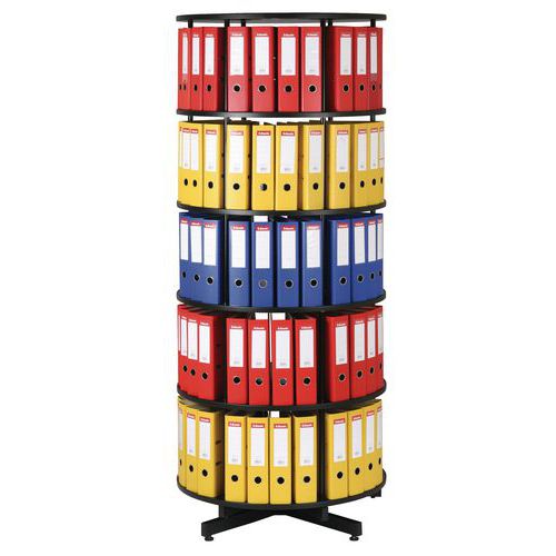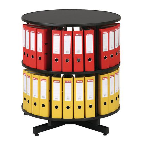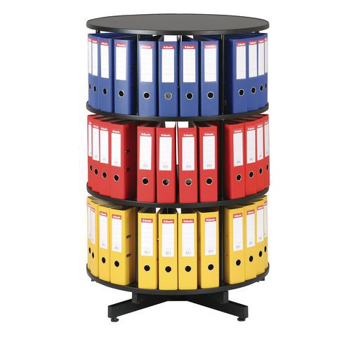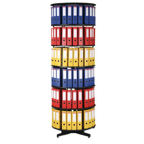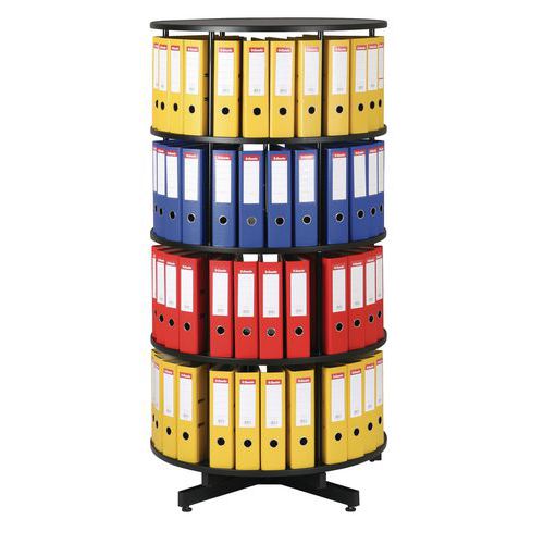 Forgó szekrények iratlefűzőkhöz. Egyszerű forgatás a keresztvázban lévő csapágynak köszönhetően. Beállító csavarok a padló egyenetlenségeinek kiegyenesítéséhez. További szintek vagy görgőkészlet vásárolható hozzá.