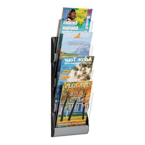 Az átlátszó rekeszekkel ellátott fali tartó jól láthatóan megjeleníti reklámprospektusait. Nagy kapacitás a 2,3 cm-es rekeszszélességnek köszönhetően. A készüléket egyszerűen a falra rögzítheti egy praktikus rápattintható rendszernek köszönhetően.