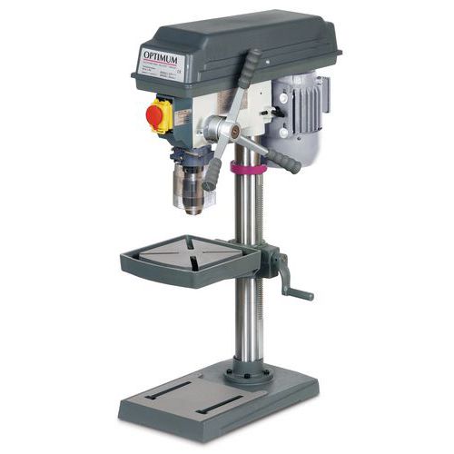 Profi asztali oszlopos fúrógépek az orsó pontos golyós csapágyazással minden gépnél RÖHM gyorsrögzítőfej csökkentett zajszint a csiszolt hordozójú alumínium ékszíjtárcsának köszönhetően javult erőpontosság és jelentősen csökkentett teljesítmény veszteség a minőségi fogazott szíjaknak köszönhetően Furatmélység állítás pontosan kidolgozott munkaasztal, beállított alapú T-horonyokkal, -45° és +45° lehajtható, 360°-ban elforgatható (kivéve az 1. pozíciót) tömör, beállított alap T-horonyokkal, a hátoldalon erősen redőzött a fúrók előtoló alumínium emelővel, ún.Softgrip-pel ellátva, egybeépítve hozzáférhető biztonsági kapcsoló IP 54-es burkolattal, nullás kapcsolóval és blokkoló vészkapcsolóval a 400 V modellek továbbá balra-jobbra fordítható bütykös kapcsolóval is el vannak látva könnyű elölről történő kiszolgálás halk és nagy teljesítményű elektromotorok az egész gép masszív, tömör szállítás terjedelme: RÖHM gyorsrögzítőfej 3-16 mm B16, orsócsap, 2 db T-anya Max. fúrófej átmérő/ acél: 553003 - 16 mm, 553004,553005,553006 - 25 mm, 553007 - 30 mm Orsó fordulatszáma: 553003 - 500-2520 fordulat/perc, 553004,553005,553006 - 20-2440 ot/min, 553007 - 12-1810 fordulat/perc Furatmélység: 553003 - 65 mm, 553004,553005 - 80 mm , 553006 - 85 mm, 553007 - 120 mm A fúróasztal elforgatási szöge: -45° - 0° - +45° Motor teljesítmény 50 Hz:553003 - 500 W, 553004,553005,553006 - 750 W, 553007 - 1100 W