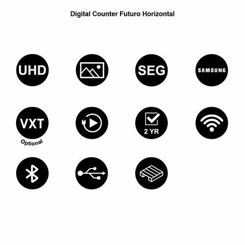 Az 55ESF digitális számláló a modern dizájnt 4K kijelzőtechnológiával ötvözi. A stabil konstrukció lehetővé teszi a használatot még forgalmas területeken is. Az oldalsó SEG panelek egyszerű cseréje rugalmas márkajelzést tesz lehetővé. Tökéletes kiállításokra, rendezvényekre és reprezentatív terekbe.