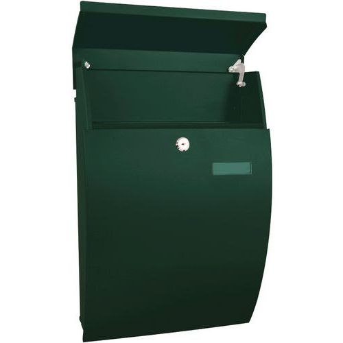 Falra szerelhető levélszekrény porszórtan horganyzott acélból, hengerzárral és kis névtábla tartóval felszerelve. A postai küldemények védelmére szolgáló beadónyílás (24x4cm) a fedlap alatt található.