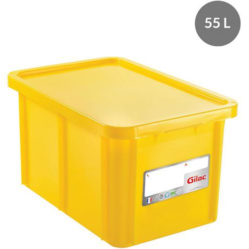 Gilac egymásra rakható tároló fedéllel, HACCP, 55 l, sárga Gilac egymásra rakható tároló fedéllel, HACCP, 55 l, sárga