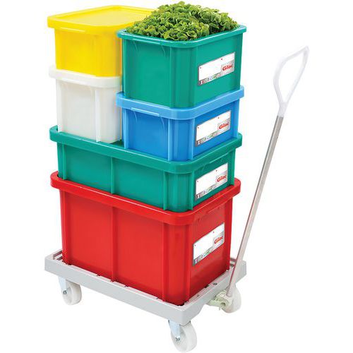 Műanyag élelmiszertároló HACCP tanúsítvánnyal, 40x30 cm és 60x40 cm téglalap alakú. Nagy tárolókapacitásokhoz. Újraírható azonosító kazetta a készletnyilvántartáshoz. Rögzítőfelületek nélküli változat. Süllyesztett fogantyúk a jobb kezelhetőség érdekében. Fedél nélkül egymásra rakható. Kompatibilis az összes Gilac 4 és 6 vázzal.