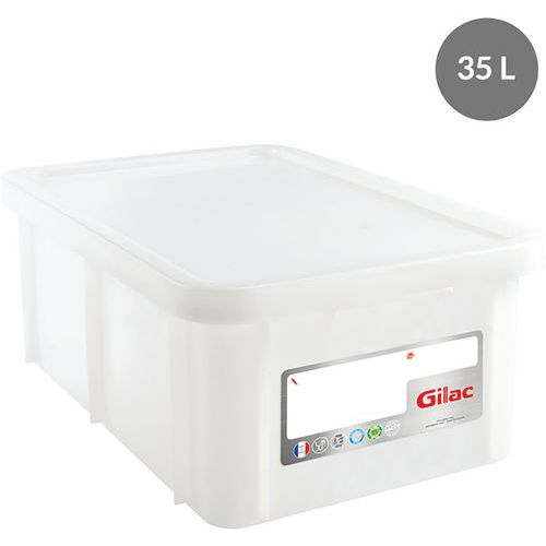 Gilac egymásra rakható tároló fedéllel, HACCP, 35 l, fehér Gilac egymásra rakható tároló fedéllel, HACCP, 35 l, fehér