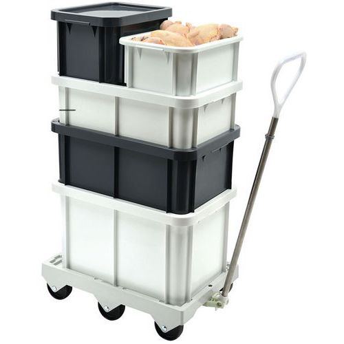 Téglalap alakú műanyag élelmiszertároló, amely megfelel az európai szabvány méreteinek. Ideális alacsony és magas hőmérsékleten történő tároláshoz, valamint az összetevők szállításához. Opcionális csúszófedél a jobb higiénia érdekében. Tökéletesen higiénikus - teljesen sima alap és falak, lekerekített sarkok. Könnyű kezelés köszönhetően süllyesztett fogantyúval. Fedő nélkül egymásra rakható. Gépben mosható. Kompatibilis a minden tengelytáv Gilac 4 és 6.
