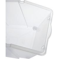 Élelmiszer-alapanyag tartály. Teljesen átlátszó fedél az átlátszóság érdekében. Könnyű hozzáférés. 4 kerék, melyek közül 2 forgó, a nagyszerű mobilitás érdekében.