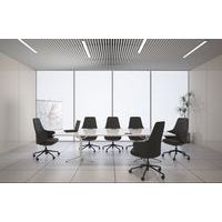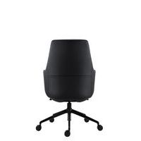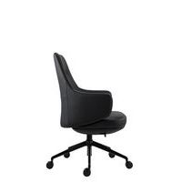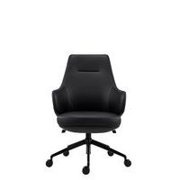 Teljesen kárpitozott luxusfotel közepes magasságú háttámlával és integrált kárpitozott kartámaszokkal. A háttámla oldalirányban tartja a törzset és optimális deréktámaszt nyújt. A tapintható részeken finom marhabőr borítás, a többi felületen szintetikus bőr - mikroszálas bőr. Széles, nagyon kényelmes ülés finom perforációval az oldalakon, a légáteresztő képesség növelése érdekében. Hosszú élettartamú, formába fröccsöntött hideghabbal párnázva. Szinkronmechanizmus automatikus ellensúly-beállítással és háromfokozatú rögzítéssel. Ø700 mm-es alumínium kereszttartó, matt fekete festéssel. Ø 60 mm-es kerekek gumibevonattal, minden típusú padlóhoz. A szék teherbírása 150 kg.