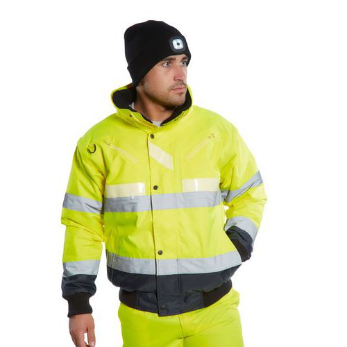 Ez a 3 az 1-ben bomber dzseki a Glowtex hármas technológiát alkalmazva maximális láthatóságot biztosít viselőjének. Fluoreszkáló alapanyag mely a nappali láthatóságot biztosítja HiVisTex nagyteljesítményű fényvisszaverő szalag az éjszakai láthatóságért és speciális Glowtex™ foszforeszkáló szalag mely világít a sötétben. A kivehető bélés és gallér ill. a levehető ujjak teszik több funkcióssá ezt a kabátot. CE minősítés Levehető kapucni Telefontartó zseb UPF 50+ 4XL Bordázott szegély D gyűrű 8 zseb Vízálló ragasztott varratokkal Levehető ujjakkal szőrme béléssel és szőrme gallérral Kiváló Glowtex hármas technológia 3 az 1-ben kabát Bordás mandzsetta Ezee zippzár Texpel Splash Regisztrált európai közösségi design